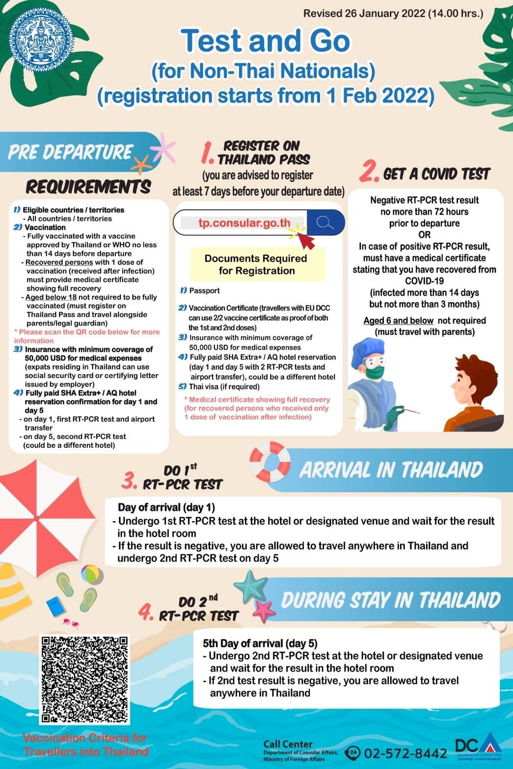 Om negativt, resa fritt inom sandlådeområdet i 7 nätter innan du reser till andra destinationer i Thailand.